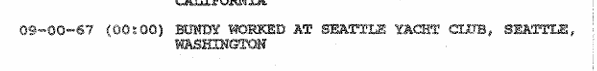 Per the ‘1992 TB FBI Multiagency Team Report,’ Ted worked at The Seattle Yacht Club as a busboy beginning in September 1967; there is some uncertainty as to exactly how long he worked there, some reports say four to six weeks, others say six months, however according to Seattle police files, he ceased emp[lpoyment on January 13, 1968.