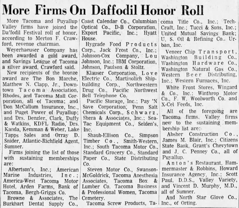I found a newspaper article that mentions the company ‘Export Pacific’ from the same year Bundy worked there published in The News Tribune on February 16, 1969 (it also mentions Pierce County’s Daffodil Festival, which one of his victims Georgann Hawkins was a part of in 1972/1973).