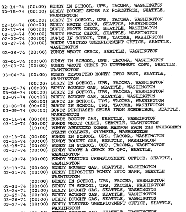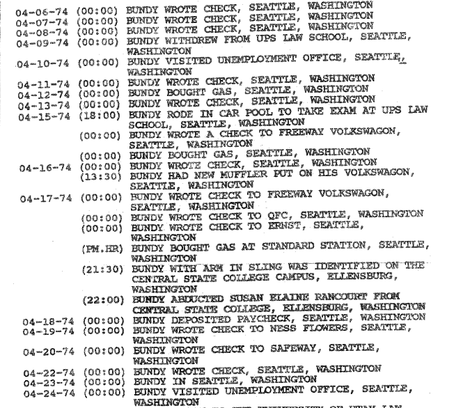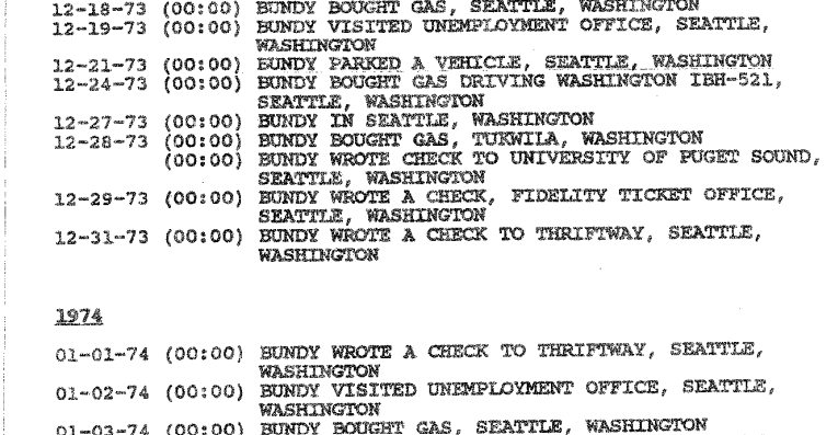 According to the ‘1992 TB FBI Multiagency Team Report,’ Bundy was unemployed from October 1973 to May 3, 1974.