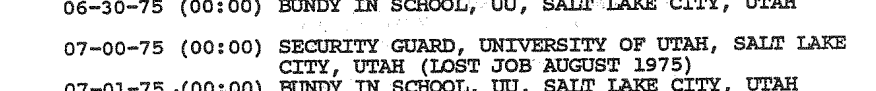 According to the ‘1992 TB FBI Multiagency Team Report,’ in July/August 1975 Ted worked PT as a security guard at the University of Utah; his job was terminated due to budget cuts.