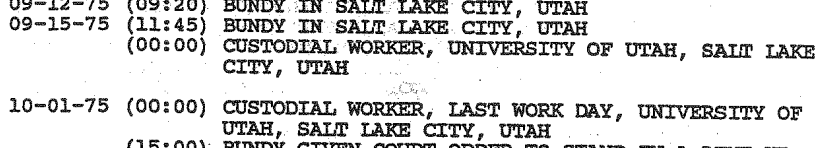 According to the ‘1992 TB FBI Multiagency Team Report,’ in September and October 1975 Ted was part of the custodial staff in plant operation at the University of Utah; his position was terminated after he was jailed in Salt Lake County.