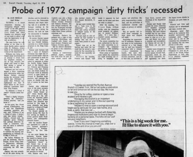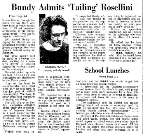 According to the ‘1992 TB FBI Multiagency Team Report,’ from September 1972 to November 1972 Bundy was employed for Governor Dan Evans’ re-election campaign.