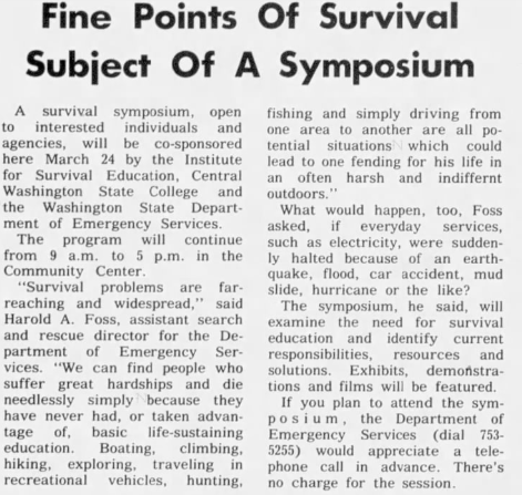 The Department of Emergency Services is mentioned in an article published by The Olympian on March 15, 1973.