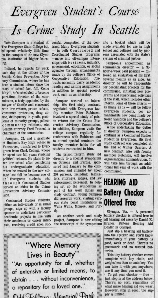 An article about the director of The Seattle Crime Commission that was published in The Olympian on March 26, 1972.