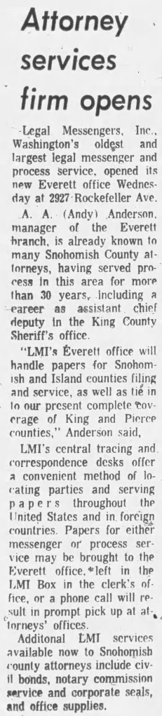 An article about Legal Messengers, Inc published in The Daily Herald on November 1, 1972.
