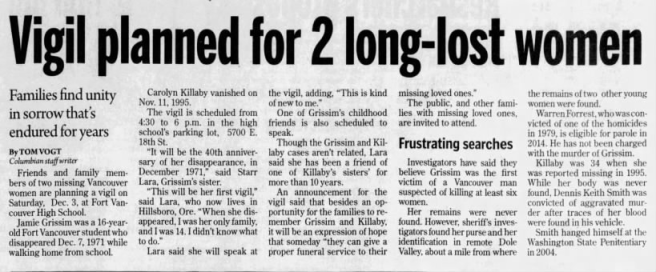 Possible Victims: On December 7, 1971 sixteen-year-old Jamie Rochelle Grisim was last seen walking home from Fort Vancouver High School; she was reported as missing by her foster mother the following day. During one of the searches for her shortly after she disappeared, detectives came across some of her personal belongings in nearby Dole Valley, including her purse and an ID card. It was initially believed that she ran away from her foster home and had left the state, but that theory was quickly disregarded. Since Martha Morrison and Carol Valenzuela were later recovered not far from where her belongings were found, local LE have reassessed their conclusions and now feel that Jamie was abducted and killed by Warren Forrest.