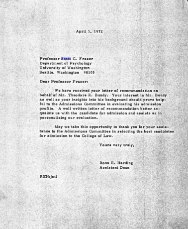 The following is an excerpt from Polly Nelson’s book, ‘Defending the Devil’ about how Ted confused to her killing the unknown Idaho hitchhiker, and where I’d normally paraphrase large sections like this I decided to include it in its entirety: ‘he had been driving around in the hills of Idaho, getting to know the area, looking for safe sites to take a victim. He was a meticulous researcher. It was an important part of a ritual so elaborate that, when I asked him about reports that he had killed over one hundred people, he actually chuckled and shook his head at the naivete of non-murderers: ‘They have no idea what it takes to do one, what it takes out of you.’ I asked him if the figure of thirty-five, which I’d seen in other accounts, was correct. He paused, stared at me, and scanned his censor to decide whether to admit to such a detail, because that was where he had always drawn the line before. He had freely implied everything, but never outright admitted one detail, like some superstitious child’s idea of what could be held against him. He finally nodded and mumbled, ‘yes.’ While driving, he spotted a hitchhiker, a girl around fifteen years old. He had not planned to do anything while scouting, but there she was. He checked the rearview mirror for other cars. None. She got in and started talking to him. He had to act fast: he did not like his victims to talk, he did not want to get to know them, he did not want to know they were real. He reached back for his tire iron and hit her over the head. She slumped in the seat, but awoke soon afterward, moaning. He knocked her out again. I noticed for the first time how strong Ted’s arms were. He had his elbows on the table and his forearms outstretched toward me as he talked. His arms were firm and sinewy, with bulging veins. His hands were large and bony. I looked at his face. Ted’s skin was darkening as he spoke. He was on a roll now, in a sort of trance, recalling every detail as he reviewed the fifteen-some-year-old film in his head, frame by frame. No detail was too small to recall, everything was important, everything had meaning. He was like a reverent disciple describing a spiritual revelation. Ted was no longer censoring himself; he had slipped into a warm wave of memory and was transported. For the first time ever, I was afraid of him, acutely aware of how swiftly he could reach me with his hands if he wanted to, of how it would be too late by the time the guards on the other side of the glass reacted. It was the absolute misogyny of his crime that stunned me, his manifest rage against women, that left me no place to retreat to. He had no compassion for this victim at all. It wasn’t that Ted took sadistic pleasure in telling his story, it was just that he was totally engrossed in the details. His murders were his life’s accomplishments. To him, each recollection was a profound illustration of his skill, his willingness to go forward, his good luck. There had been no guarantees — to Ted, each completed murder had seemed like a small miracle. He drove across the state line to a secluded place in the woods that he was already familiar with. He led the girl out of the car, assuring her that no harm would come to her. He made her strip and kneel on her hands and knees while he took Polaroid pictures of her. (For Ted, another small miracle had been that when his apartment had been searched upon his first arrest in Utah, the investigators had failed to check the building’s utility room. When he was released on bail for the attempted abduction of Carol DeRonch he retrieved the shoebox of photos he’d hidden there and destroyed the most graphic and conclusive evidence of the true depth of his depravity). She cried. He could see the look of terror in her eyes, her eyes begging for mercy. He kept reassuring her. He didn’t like to see their hurt, he said, he didn’t like to see his victim as a person: he wasn’t the kind of person who would harm another. On several occasions, Ted had told me, ‘believe me, Polly, I am not the kind of person who would hurt a fly. I never even hit a man. Except once, on the playground at grade school, and I didn’t even want to do that, but the other kid forced me. I felt terrible afterward, disgusted with myself.’ Then he got behind her, slung a noose around her neck, and strangled her as he raped her. He’d continued to reassure her he would let her go, and she had seemed to believe him. He said he’d felt a little sad that he could not let her go, that he had to kill her, but she would be able to identify him, of course. Afterward, he pulled her body deeper into the woods and, the next day, drove back to take more pictures and to cut her body into pieces (Defending the Devil, 257-259).’