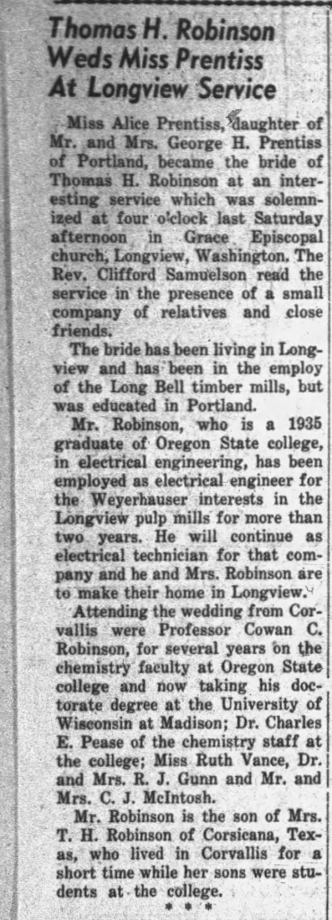 Fay Ellen Robinson was born on October 7, 1948 to Thomas Harvey and Alice Susan (nee Prentiss) in Portland, Oregon.Thomas Harvey Robinson Jr. was born on September 29, 1912 in Corsicana, TX, and Alice was born on September 15, 1916 in Oregon. Mr. Robinson graduated from Oregon State University in 1935 with a degree in electrical engineering,** and he had a long and successful career with The Bonneville Power Administration. The couple were married on September 6, 1938, in Longview, WA and had three children together: Fay, Patricia (b. 1943), and Randolph (b. 1946). Fay was a 1966 graduate of Tigard High School, where she excelled at academics and was a member of National Honor Society; she was also in her schools play group, Spanish Club, and Ski Club. Robinson went on to attend the University of Oregon, and after graduating in 1970 she moved to Eugene and got a job with the State Public Welfare Division. At the time of Fay’s murder her sister Patricia lived across the street from her.